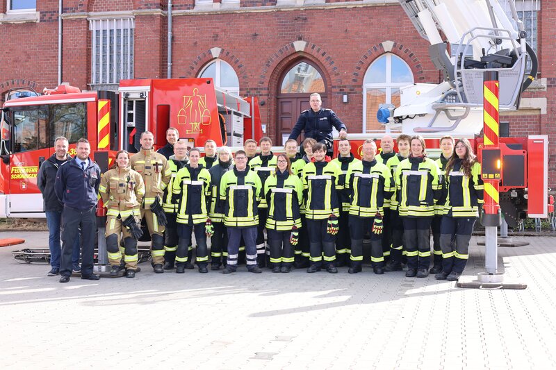 Ein besonderer Dank der Ausbildungsleitung richtet sich in diesem Zusammenhang an die Feuerwehr Schöningen, die ihren Teleskopmast zur Verfügung stellte, sowie an den Landkreis Helmstedt für die Bereitstellung eines Rettungswagens.