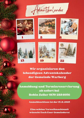 Der Gemeinderat Warberg organisiert den lebendigen Adventskalender der Gemeinde Warberg.
