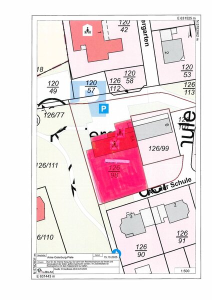 Das Grundstück ist bebaut mit einem ehemaligen Kindergarten der Mitgliedsgemeinde Warberg. Das Gebäude hat eine Nutzfläche von ca. 175 m2. Die Aufteilung der Nutzfläche stellt sich mit ehemaligen Gruppenräumen, Sanitärräume, Küche und Nebenräumen dar.