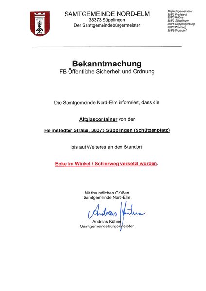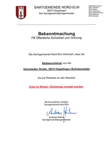 Die Samtgemeinde Nord-Elm informiert, dass die
